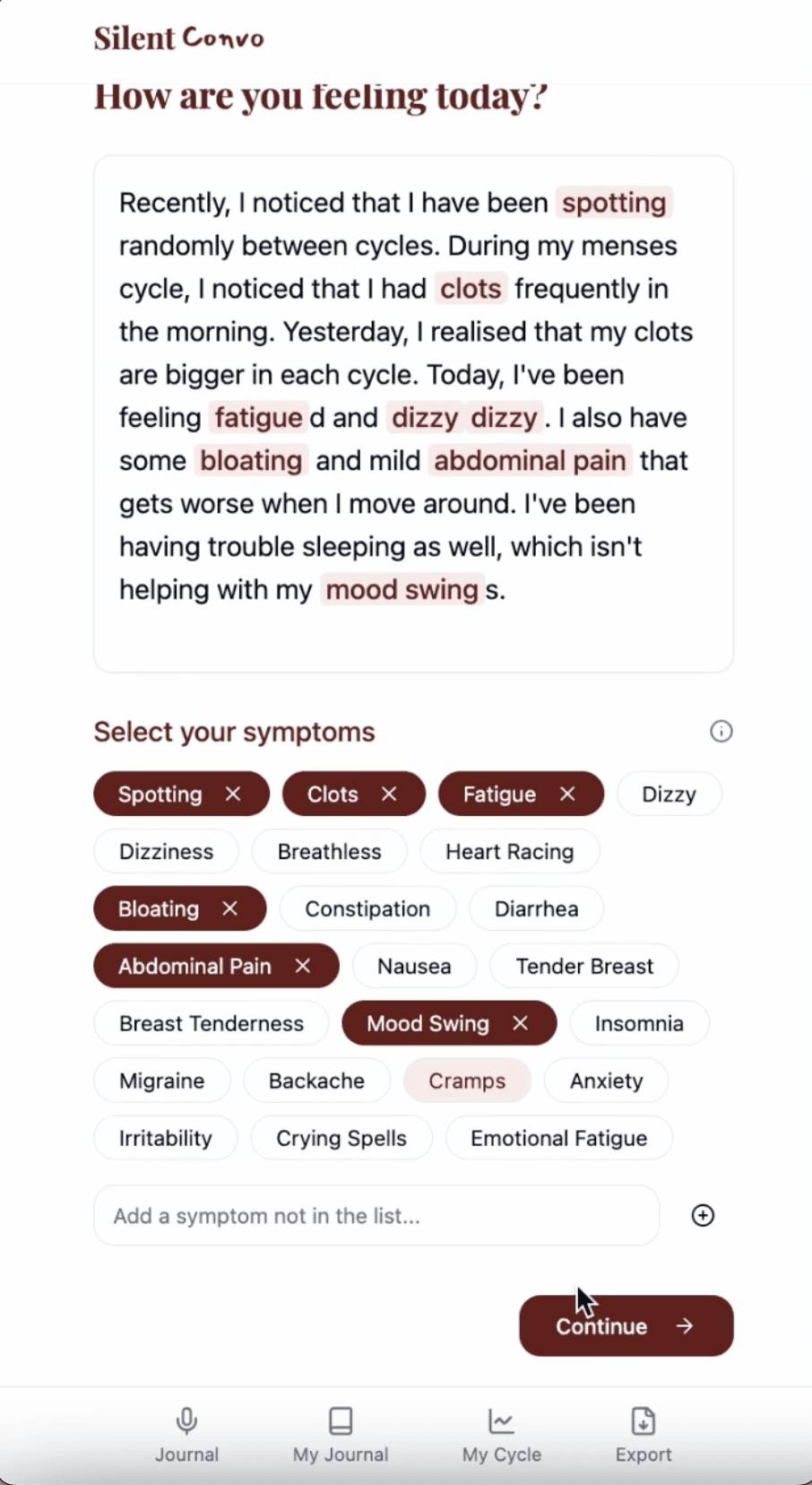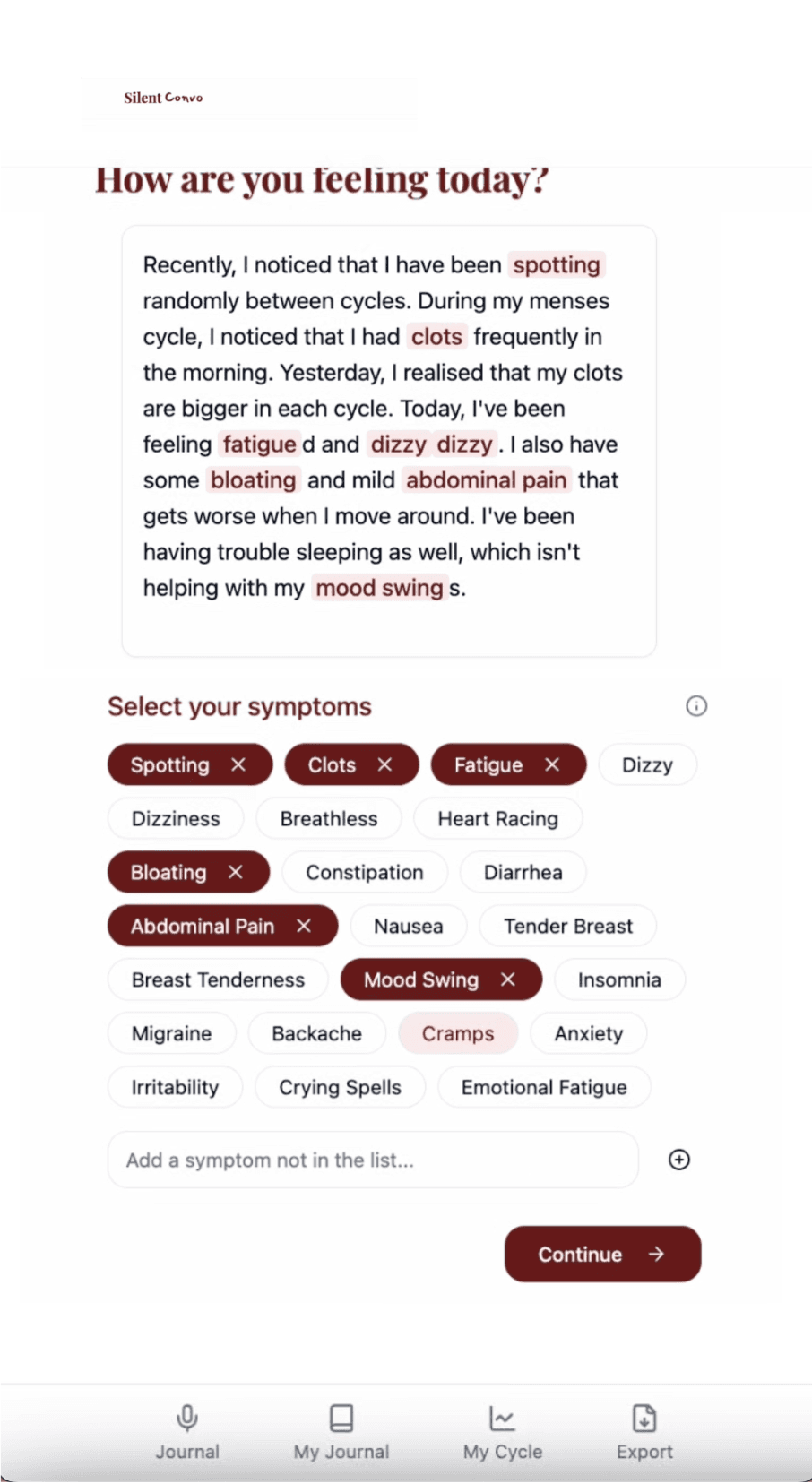 For too long, women’s symptoms have been dismissed, misunderstood, or brushed aside. The truth is clear — the system was never designed to listen to women like us. SilentConvo exists to change that: to give you the words for your pain, to make your story impossible to ignore. From PCOS to thyroid disease, from endometriosis to fertility challenges — the struggles are real, but so is our collective strength.